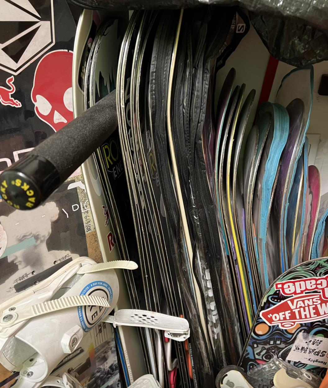 Trying to ship 57 snowboards of varying sizes for donation in Portland, Oregon, from Oceanside, California. Tallest board stands at 152cm, smallest is 110cm.