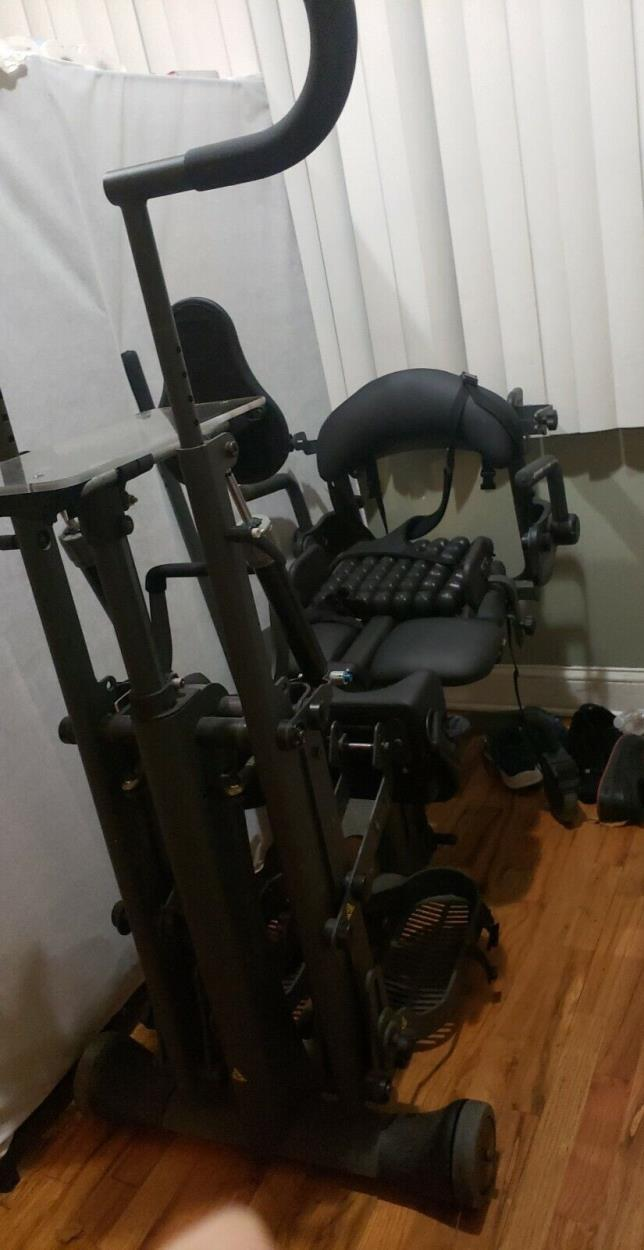 It is a standing frame chair for a disabled person. Very sturdy piece of equipment. Easy to move, as it is on wheels! Wheels lock. Can fit in a cargo van. Please do not send messages asking if I will accept a higher offer price. Thanks.