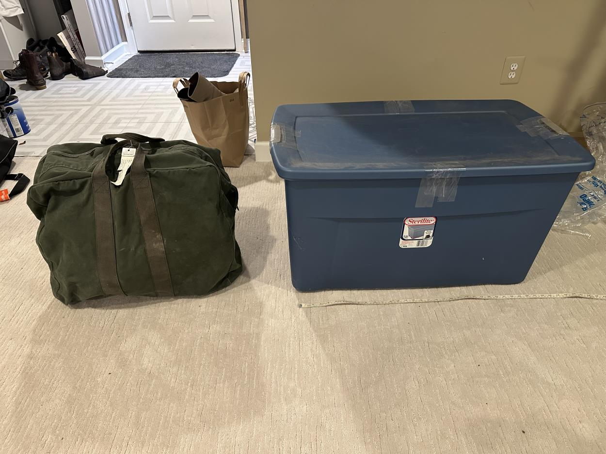 1 boxing bag, 2 stackable totes