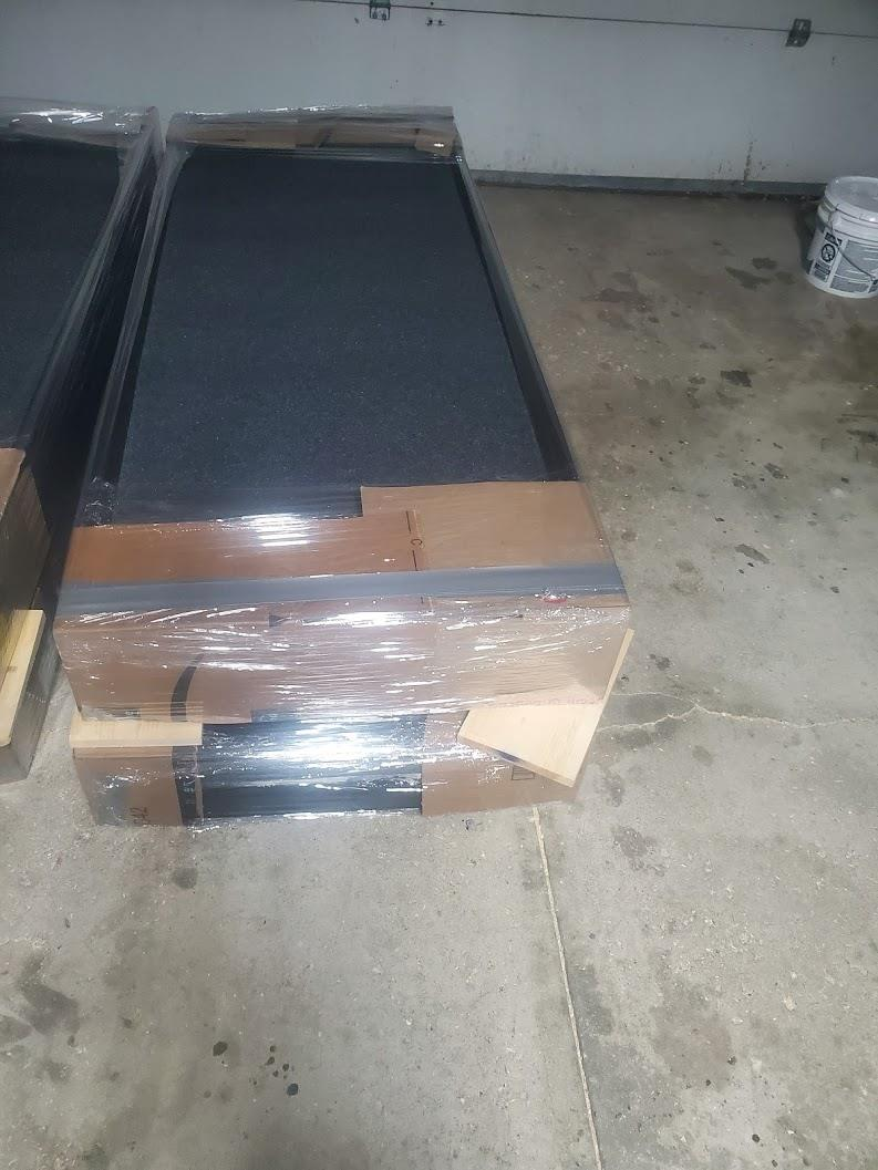 The gym unit pictured will be disassembled are ready for transport. The cumulative total of its pieces is 29 cubic feet and 590 pounds in weight. First-floor pickup and delivery.