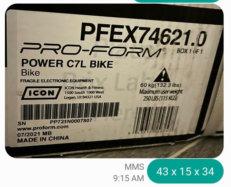 11 pallets with 17 spinning bikes, 1 Recumbent bike and 1 Stepper