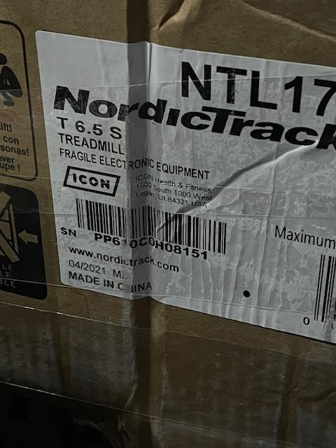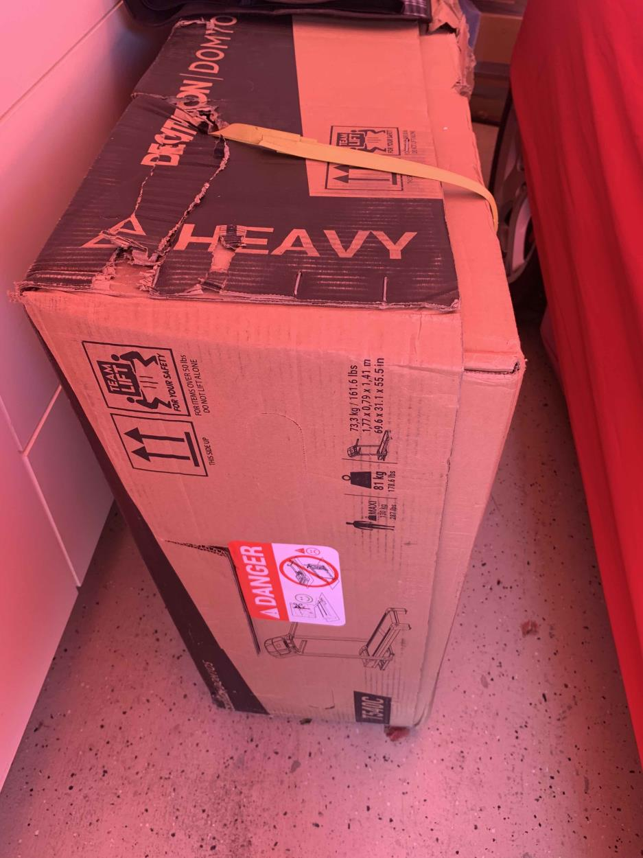 Treadmill is flat-packed in original box, not assembled. It is meant to be laid flat and is stackable.
