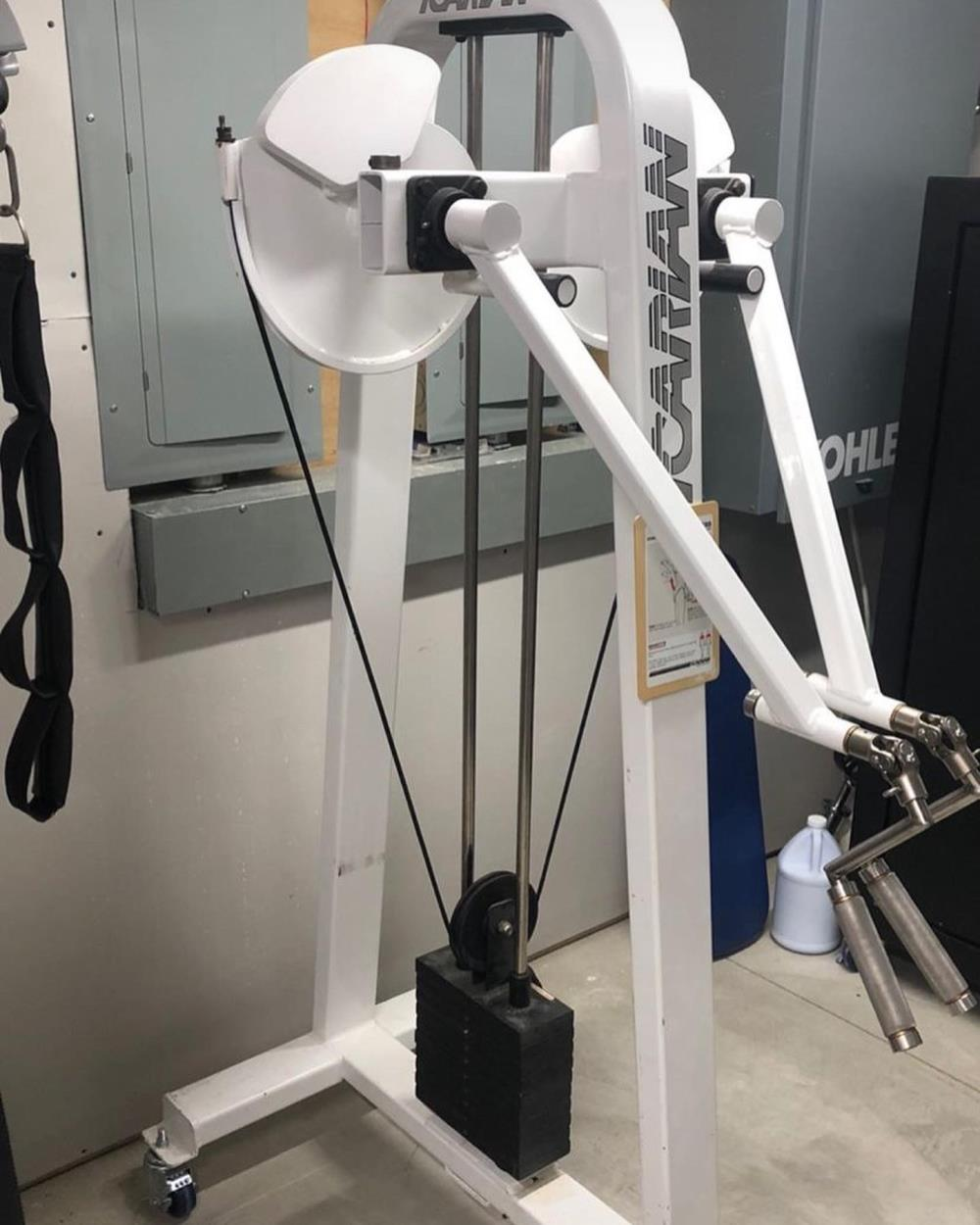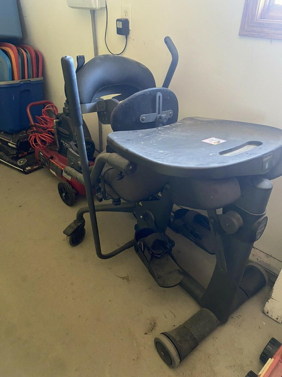 It is a standing frame chair for a disabled person. Very sturdy piece of equipment. Easy to move, as it is on wheels! Wheels lock. Can fit in a cargo van.