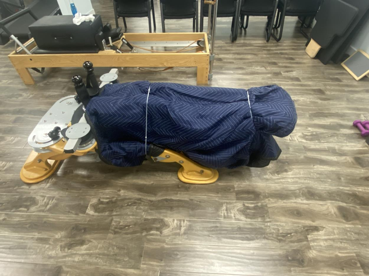 Needs to be blanket wrapped and secured can be laid down for easier transport, however would need arm bars wrapped, just need to be careful with a digital face in the top where there’s an oil glass reservoir.