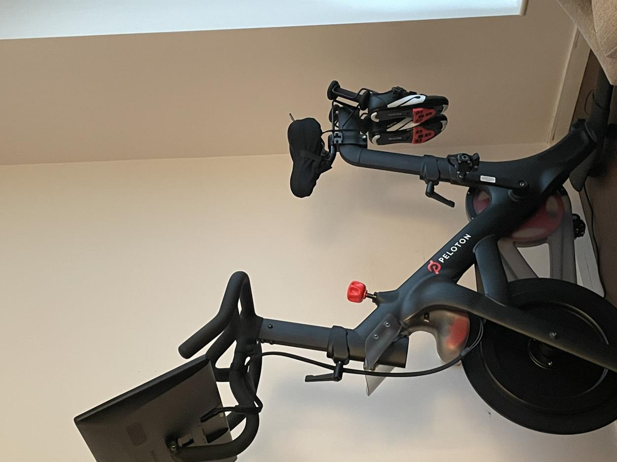 Shoes, weights , screen , bottle holder & pedals will not be on the bike . Handle bar an seat will be at the lowest level