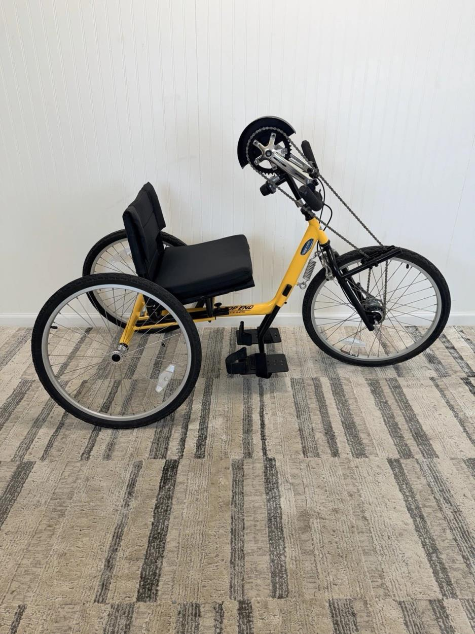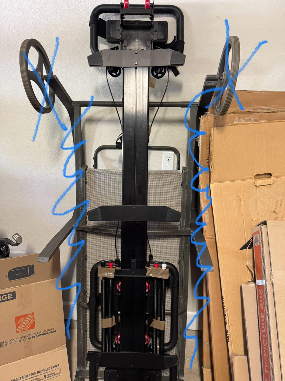 The item is leaning up against a lounge chair so it looks like it has large wheels. I crossed out the wheels in the photos.