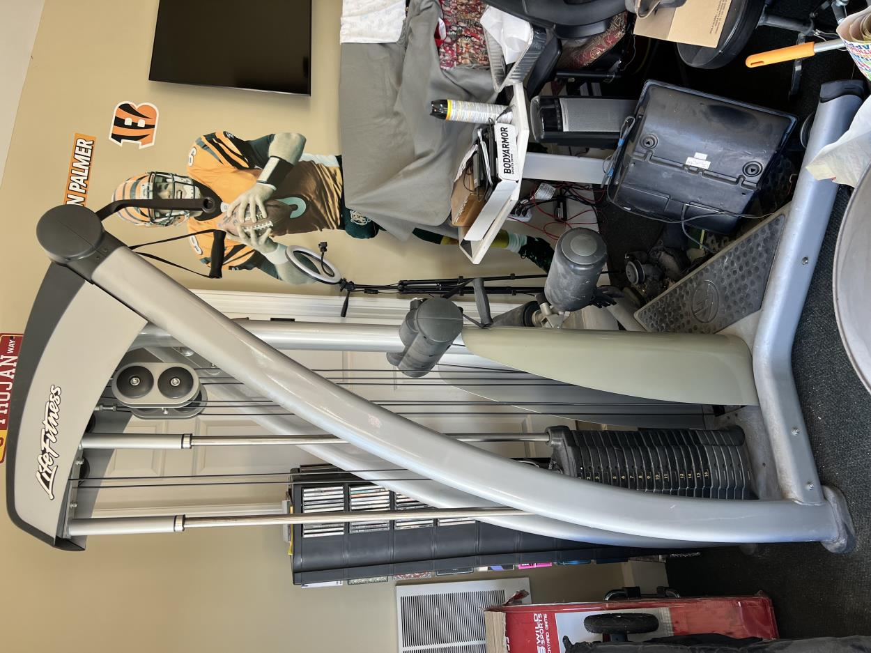 No idea on total weight of gym, the stack is 210 pounds so the remainder is the structure