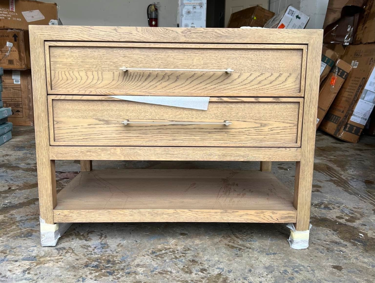 The cabinet breaks down in 2 pieces for transport. Pick up during business hours tbd; delivery date/time flexible in Dallas.