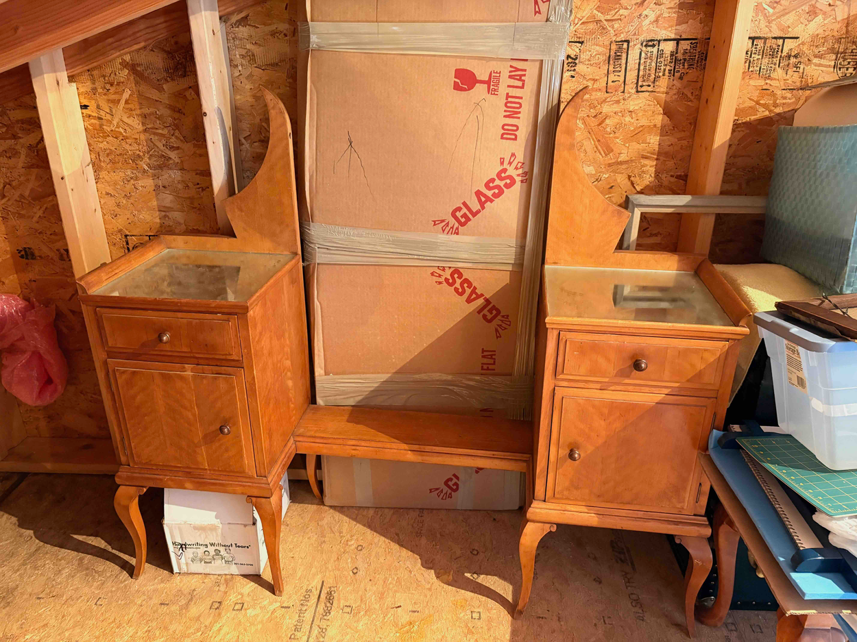 Three end tables, a dollhouse and a dresser. Photos available upon request.