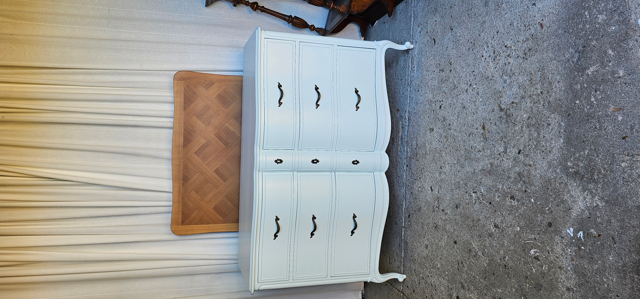 NOTE!  in the past people assumed they could lift the piece by inserting their fingers/hands into the slates and have damaged the piece.  I have repaired the damage but want to warn the movers to open the doors (or possibly remove them) and lift the box without touching the slats!