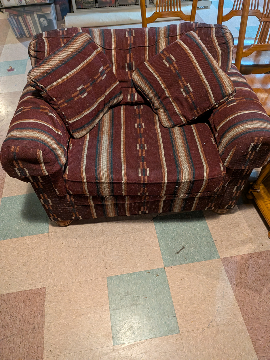 we are looking for someone already doing an Atlanta/Birmingham - Seattle transit with a little extra space. it is an overstuffed chair is 48" wide and 36" deep, with the ottoman sitting on the chair it is 36" high. Pickup has driveway and no stairs so a handcart can be used. Drop off has an adult male on-site able to help carry inside (ground level). So you will not need a 2nd person. Very flexible on timing.