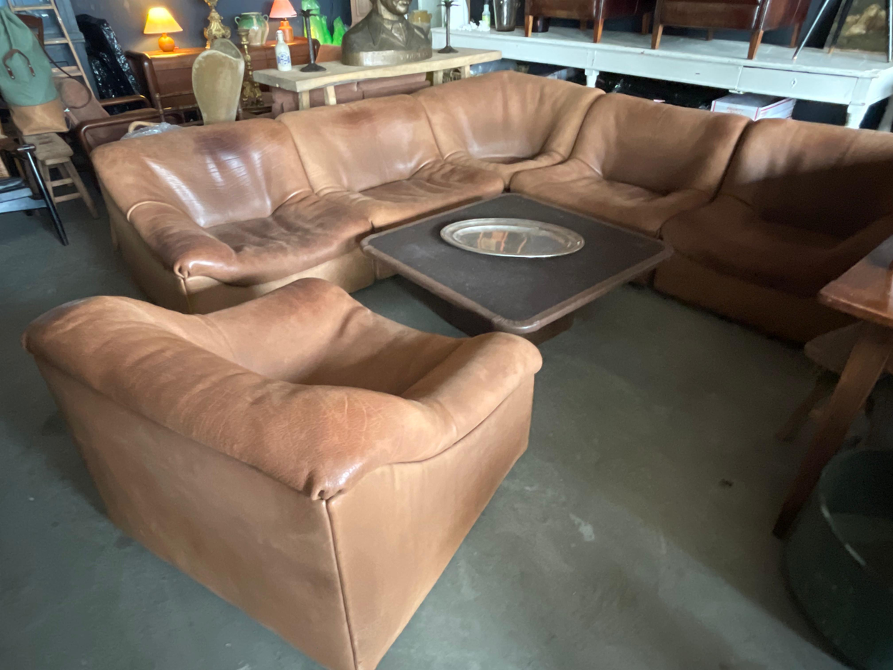 It's 7 pieces. 6 cubes that make up the sectional and one coffee table. So it's a lot easier to move they are already split apart. I need to make sure the leather does not get scratched though.