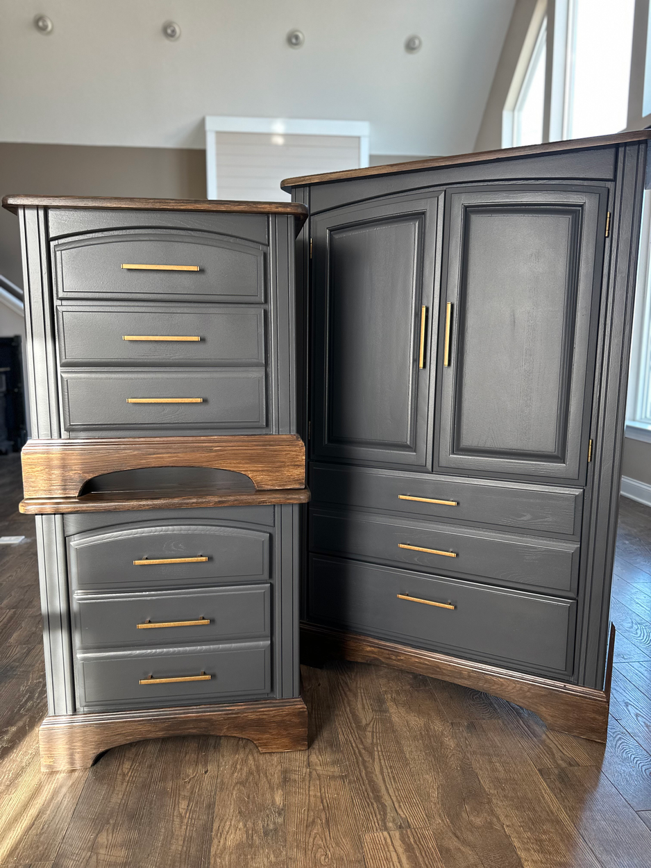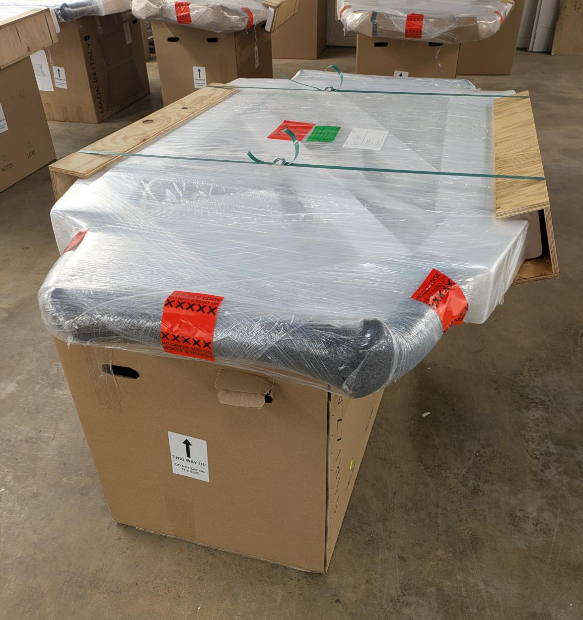 All Items Blanket Wrapped. Please Blanket wrap 4 glass shelves for Cabinet. Shelves included and need to be wrapped.