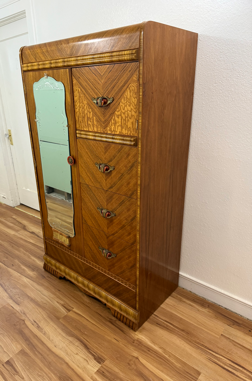 Easy pick up and drop off. No stairs, no steps. It’s the brown dresser in the photo.