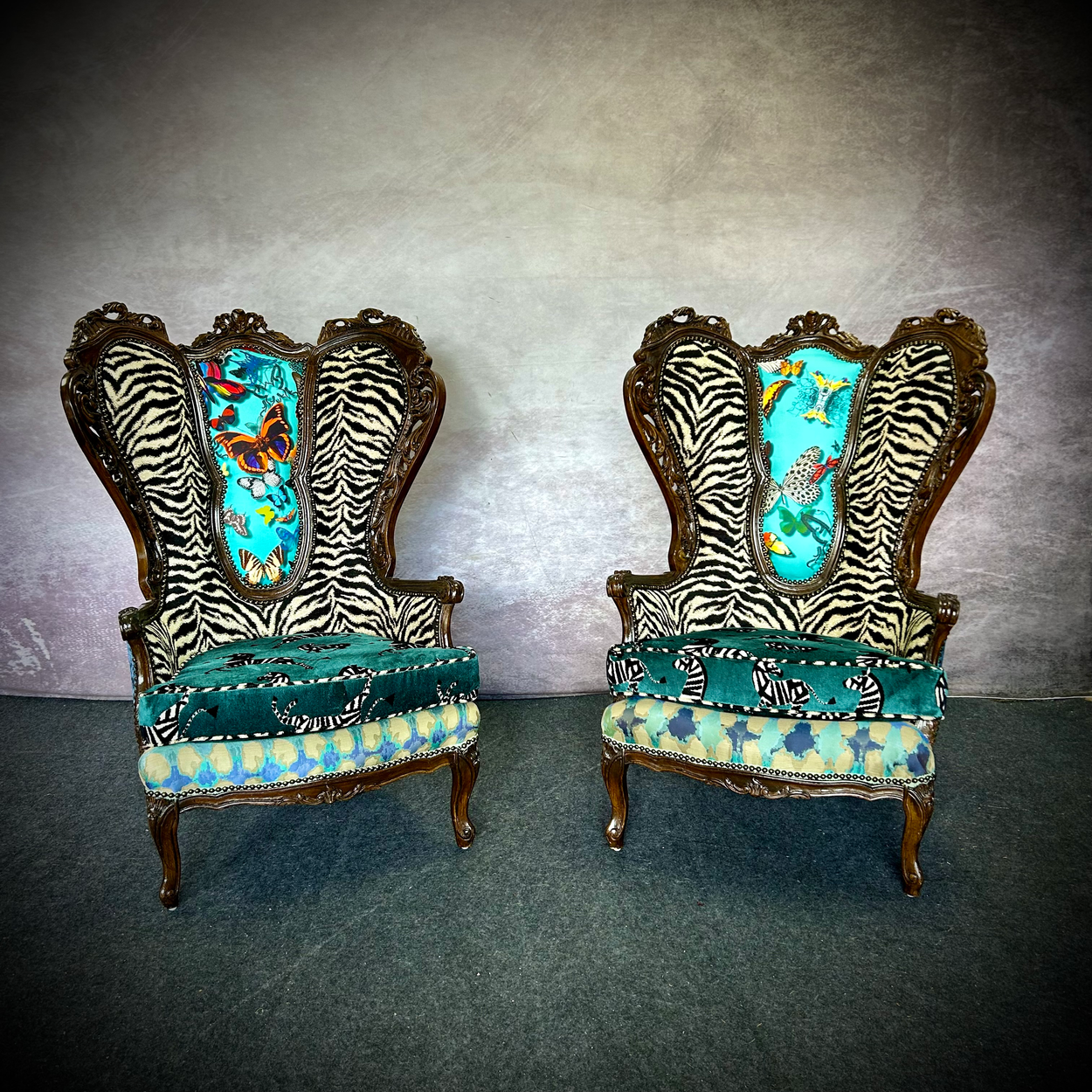 The chairs are antique and need to be handled with care.
