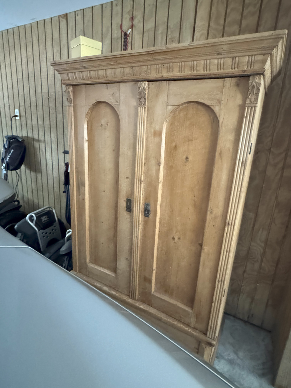 Three items are listed because the green cabinet is in two pieces (top and bottom with no assembly/connection), simply resting on top of the other. The other item is a single piece, lighter. The two pieces of furniture are inside the garage--easy access for pickup. Destination is at the end of a a one-mile, paved-single winding road--maximum of 35-45 foot truck (no tractor/trailer). Delivery access is by backing up (40 feet) to the front door in the image shown, up the 3 steps into the front door and through a first floor hallway with a couple of turns for 30 feet. No steps at pickup or delivery (other than the 3 on the front stoop to the front door).