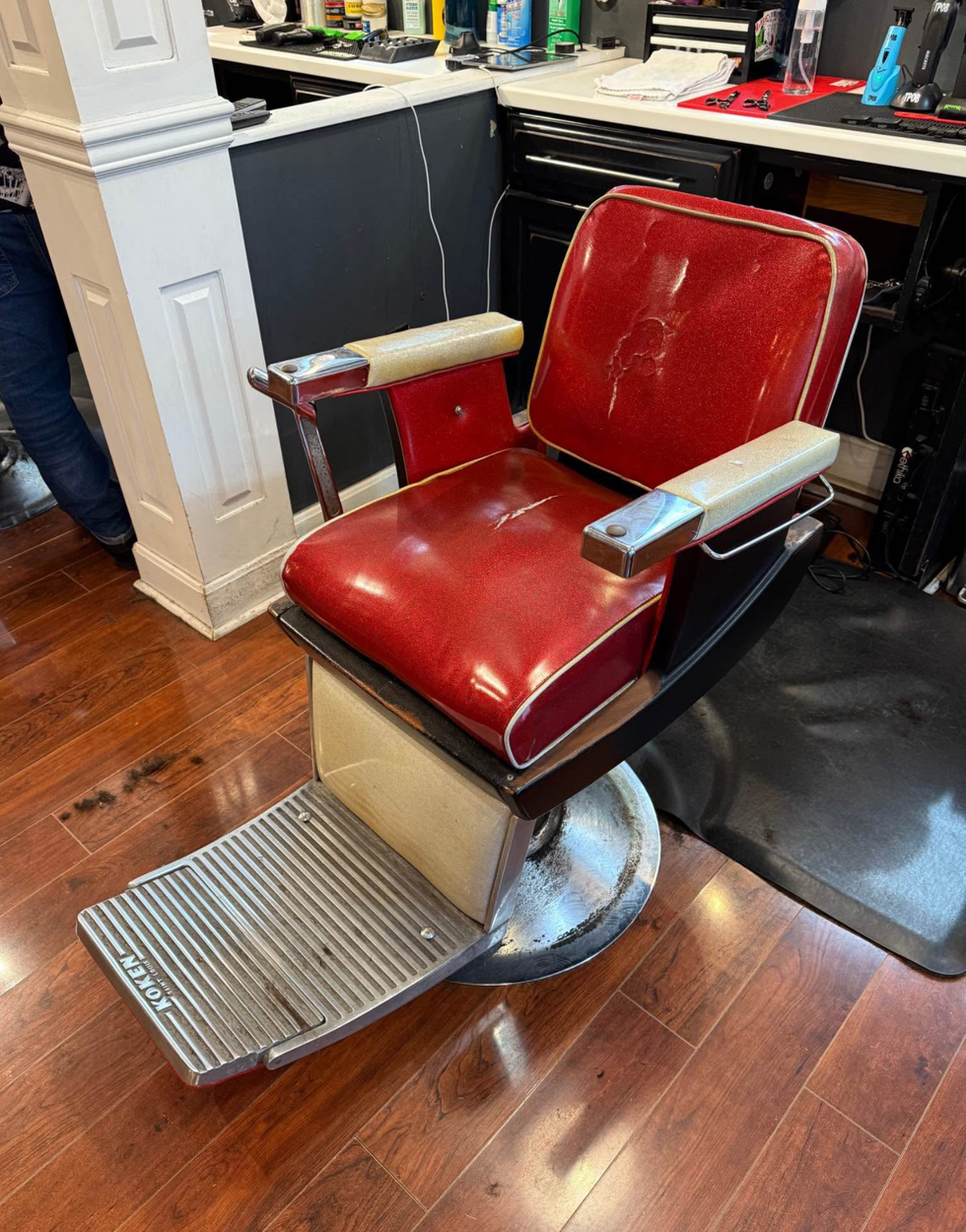 Four barber chairs getting picked up at derby city chop shop in Louisville getting delivered to Park Barbers in Grosse Pointe Park Mi.