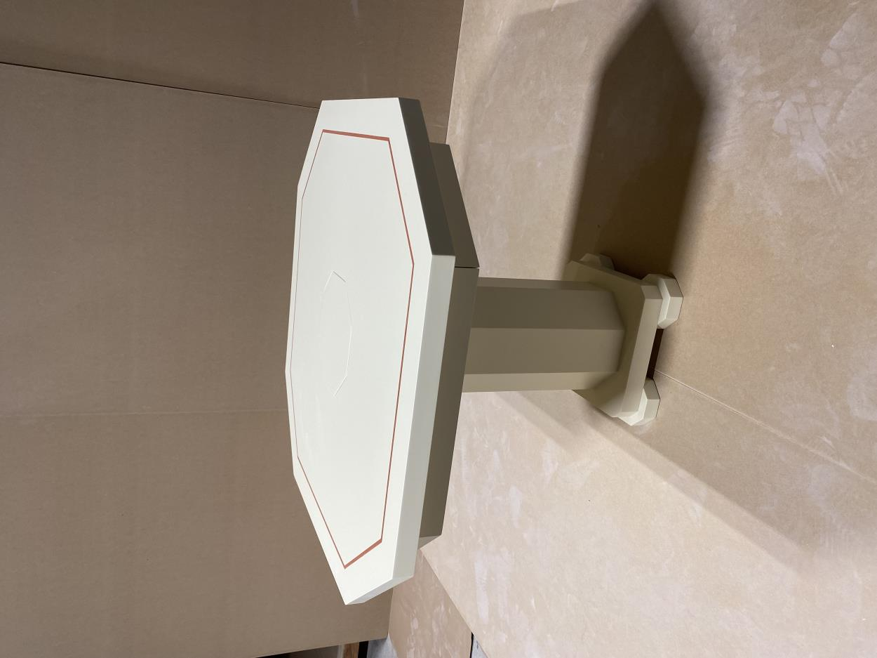 Images are for reference only. The two tables for pick up are different colors. There is a storage container in center and touch latch drawers on the corners- Must be blanket wrapped and secured!