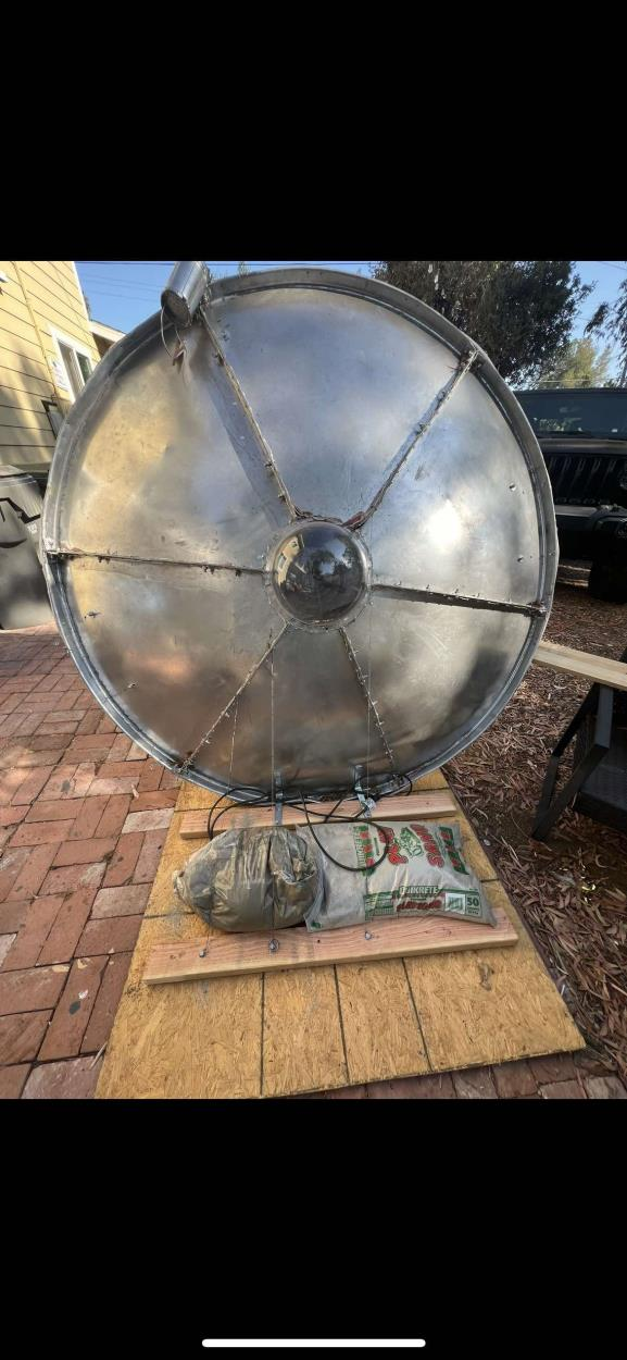 Is attached to a board to keep it standing up. ufo about 75lbs alien props made of foam.