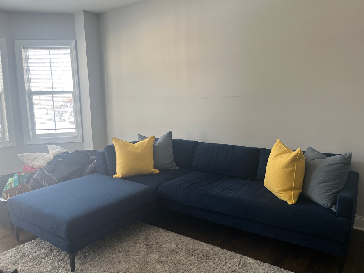 Sectional is wrapped and ready to go. Need in home delivery and assembly, remove packaging etc. Sectional is in 2 pieces and easily connects. Covered vehicle required.