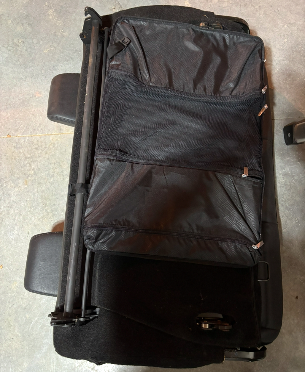 The wheels attached are used for transport and would make it relatively easy to move up a ramp door trailer . They are easily removed and not included in the measurements . The milk crate shown is also part of the delivery . We are extremely flexible with both pick up and delivery . Pick up at a business location pretty much anytime as long as it's arranged in advance . Delivery needs to be made between 9am and 5pm Monday through Friday .