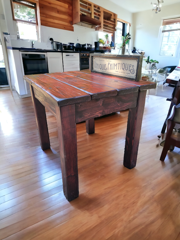 Thank you for viewing this listing, please feel free to make an offer! I run a full-time rustic farmhouse furniture company called Unique Primtiques. Please check out my other USHIP listings and see if that helps you any with combined shipping! I post up items on or near the date of sale so most listings will have an earliest pickup date, meaning I most likely will not have the item completed and ready for pickup much earlier than the earliest date given. This listing is for a small 42x42x31"h farmhouse table and two kitchen chairs....table weight estimated at 150-lb, chairs 25-lb each.