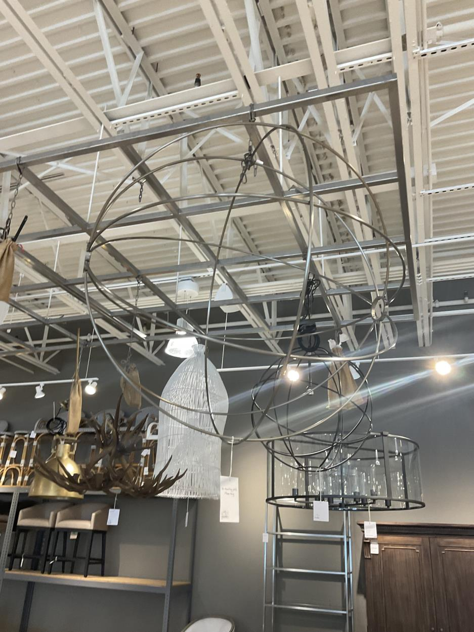 The decorative orb, which is 44 inches in radius, has been dismantled to half its height. It is not heavy, like 10-ish pounds, but it is an odd size and may take up space. Wrapping the orb in blankets or bubble wrap to protect it from scratches should suffice, but please handle it carefully to avoid distorting its shape. Please let me know if you have any questions. Thanks