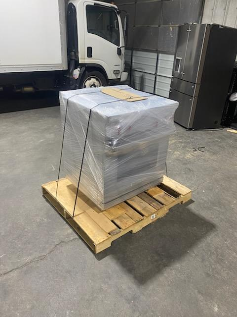 Available for pick up anytime. There is a loading dock at pick up and forklift at drop off.