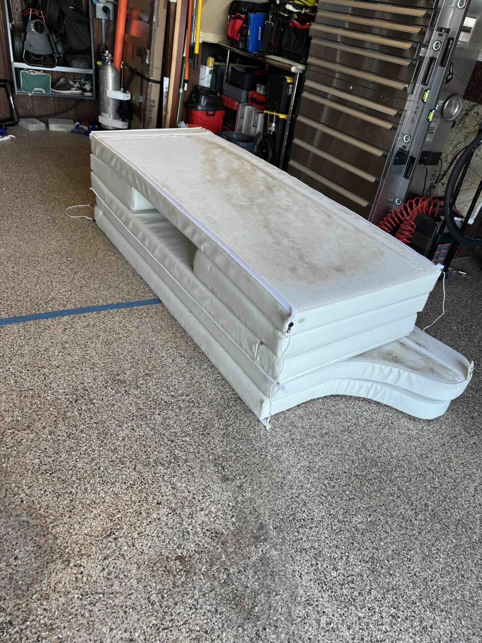 This shipment is four boat cushions that will be bundled into two pairs or stacked into a single block. I’m listing each cushion as one item. As a single block the measurements are 7’2” X 2’10” X 1’9”