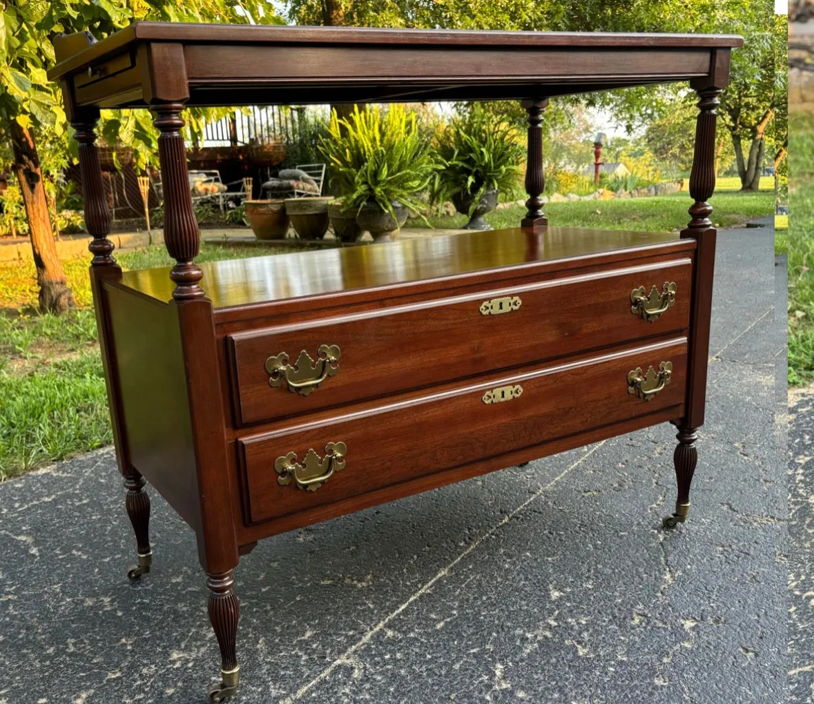 Call before you arrive. Shipment is one piece of furniture that comes in two parts. It must be loaded out of a garden apartment through a kitchen window. Please handle this with care.