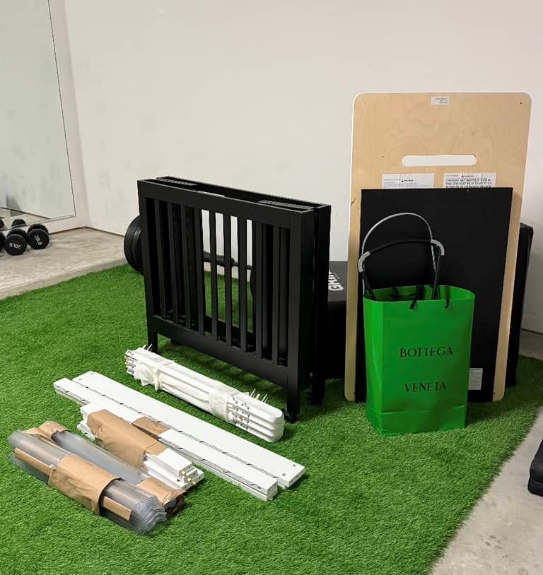 The attached picture shows the 3 items currently unwrapped, upon pickup we will have the black crib blanket wrapped, we will have the wood piece next to it blanket wrapped, and lastly the spare parts for the crib will all be blanket wrapped together for 3 total items.