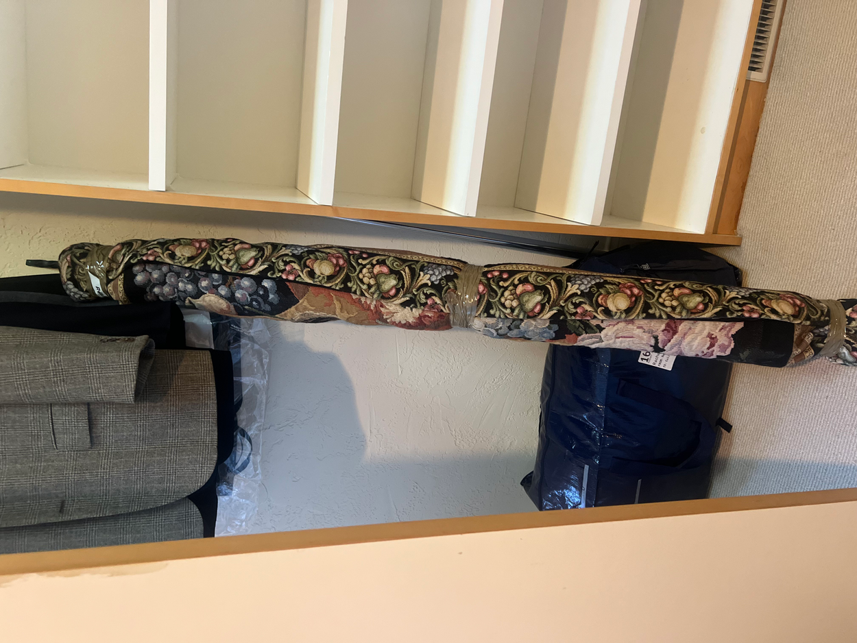 There are also 2 duffel bags that go with the shipment of the arm chair, side table, and tapestry. The tapestry is all rolled up as you can see in the picture. All of these items are being picked up from a house and being delivered to a house.