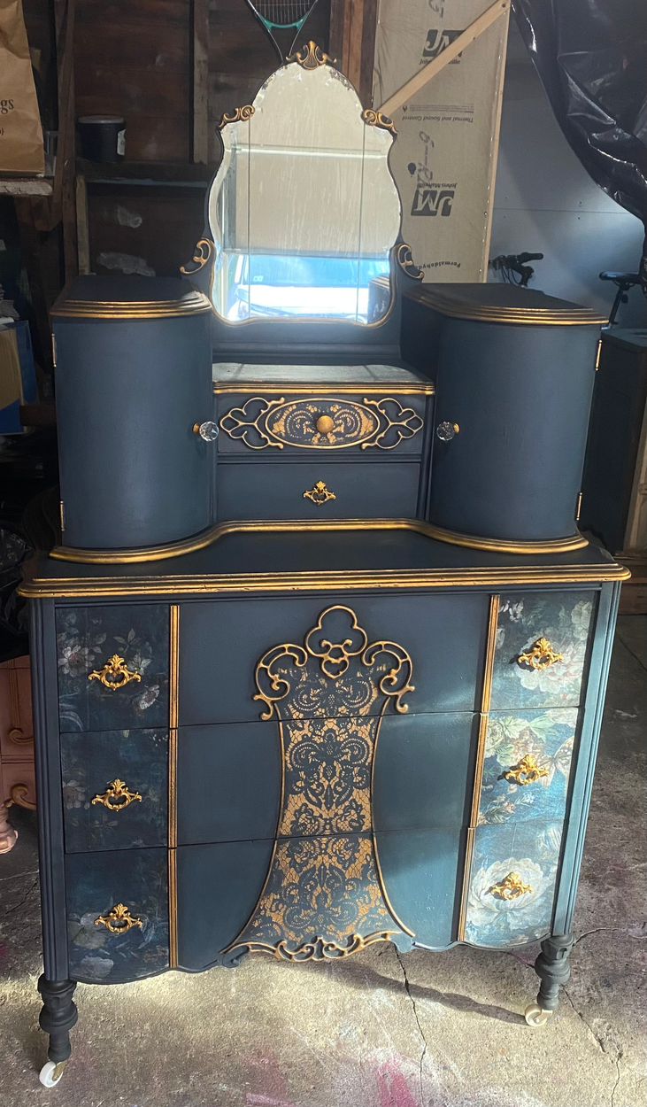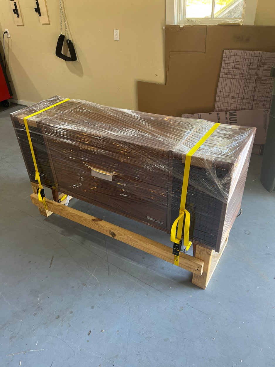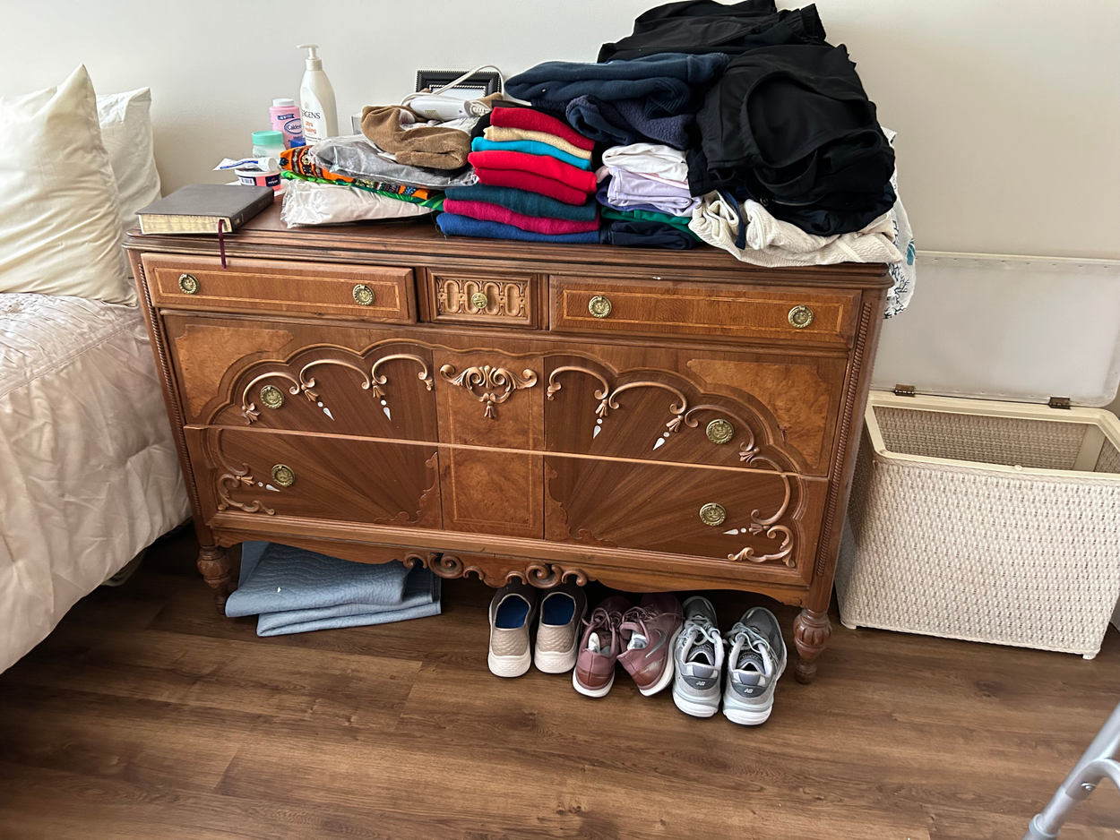 This is in the garage for easy pickup, however the dresser has to be brought up to the second floor bedroom at delivery.