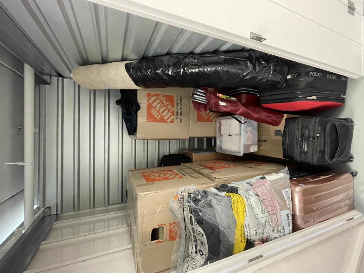 9 boxes, 4 luggage, carpet and some bags. Located at storage, easy access, trolley provided.