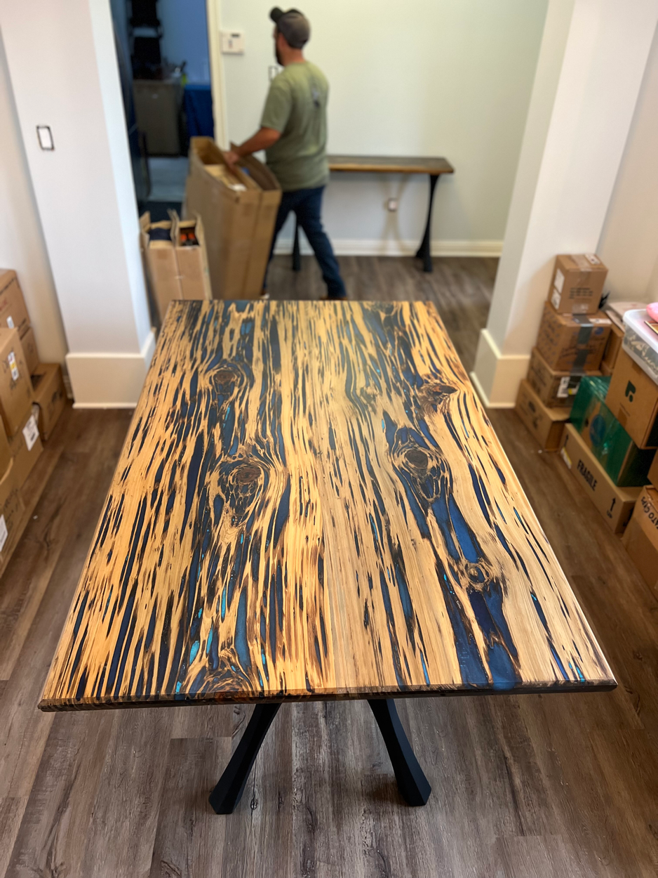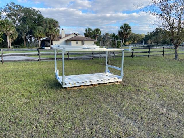 Must be in an enclosed trailer or truck , can not be exposed to weather. There is also a small table that will be shipping with this about 20in tall and 27 in wide , the large table top is only the top no legs.