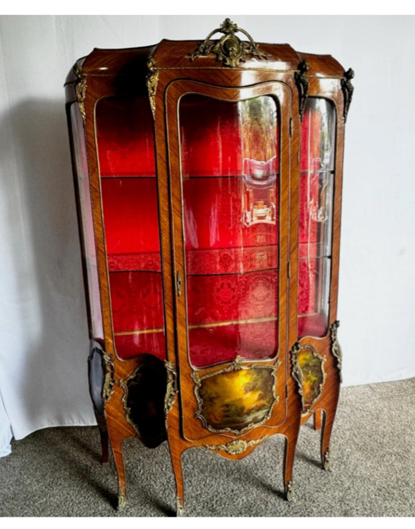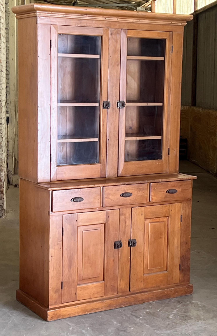 Item is antique with glass shelving and glass on doors. Will need to be handled with care. The unit should be able to be broken down into pieces due to height to ship.