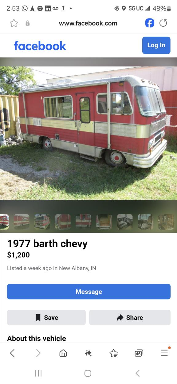 1977 Barth RV. Non operational but can be moved (not locked up) with a winch. Needs a flatbed without fenders.