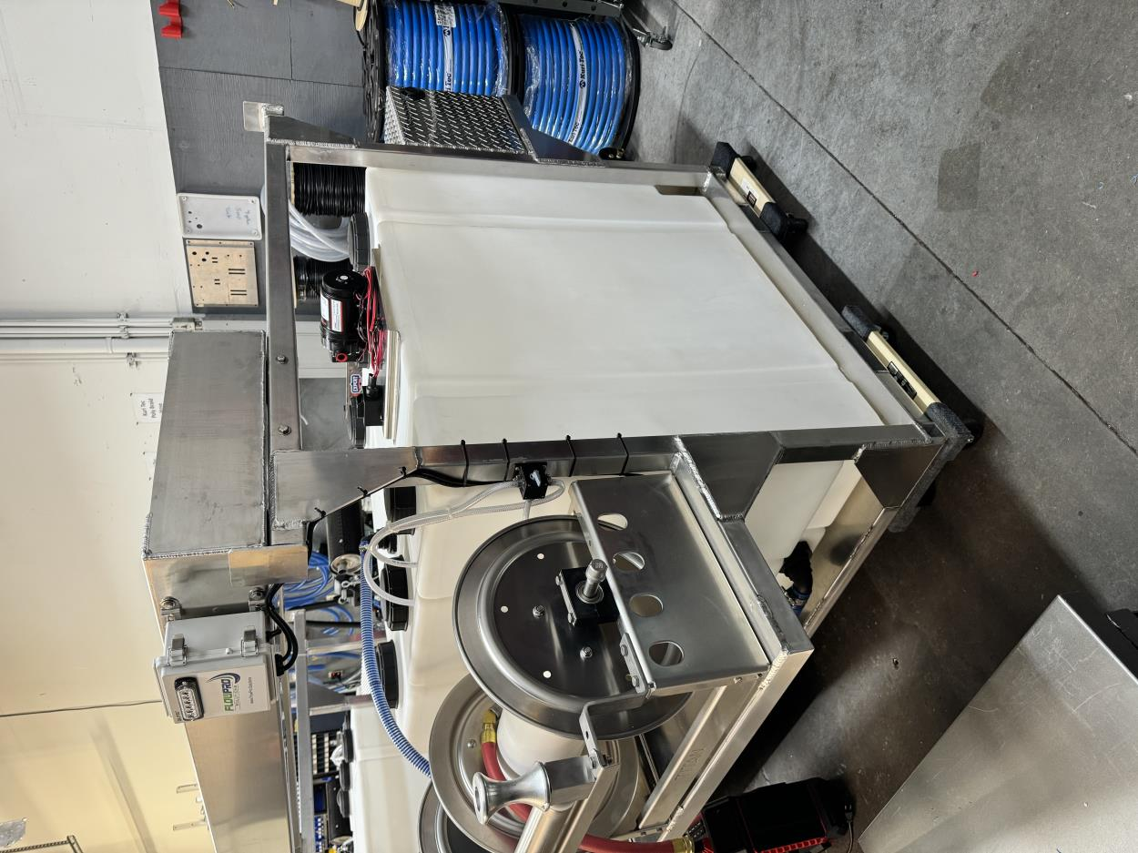 Item has fork pockets and can be loaded with a forklift.