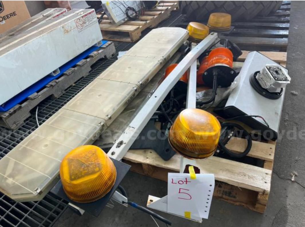Small lot of two light bars for tow truck and six small strobe lights. Not required to be covered or sheltered. Weather is no problem.