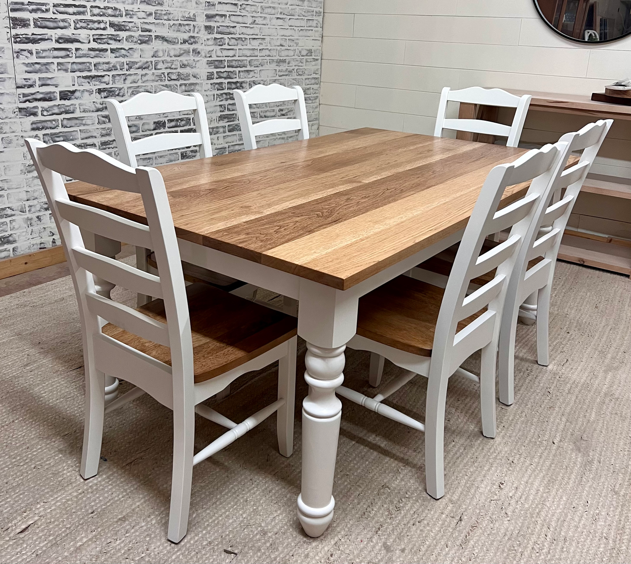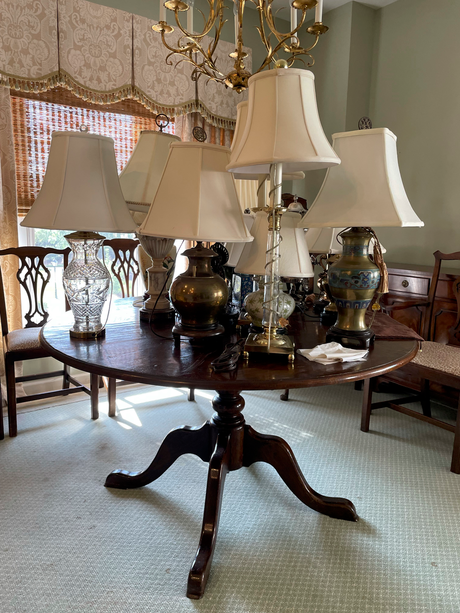 Round dining table, 60 inch diameter, base detached from table top.