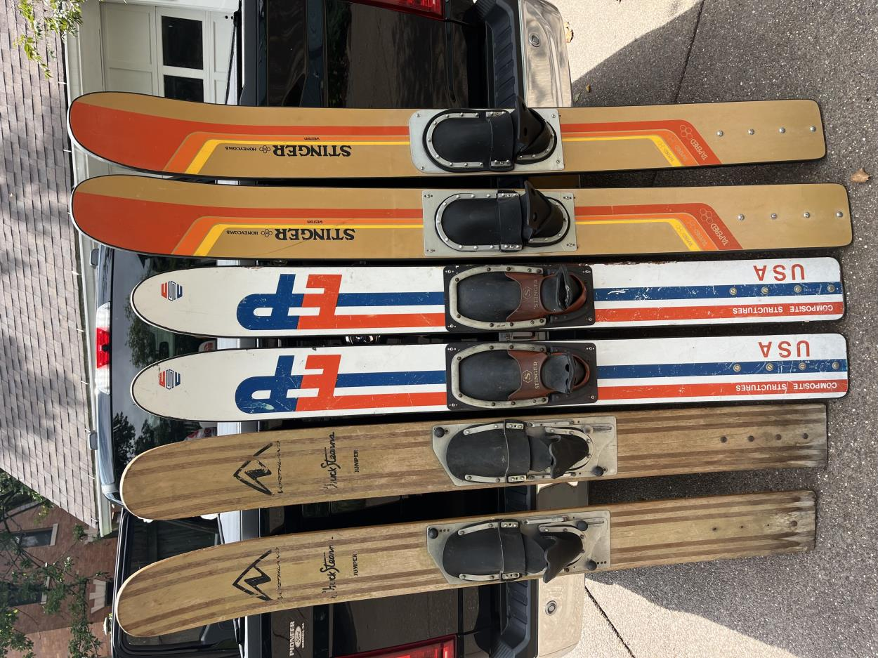 3 Sets of water skis. Nothing should be stacked on top of them to prevent damage. Can be stacked or laid on edges in bed of truck. Would prefer them not exposed to possible rock damage. Easy to wrap in moving blanket.
