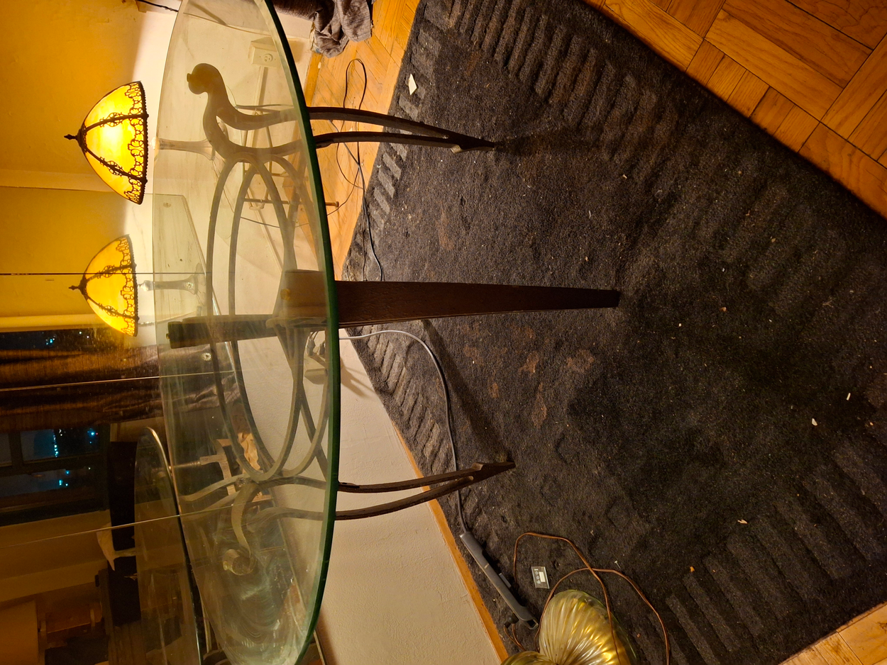 Glass top is fragile. Table base will be disassembled for pick up. Very flexible on time frame.