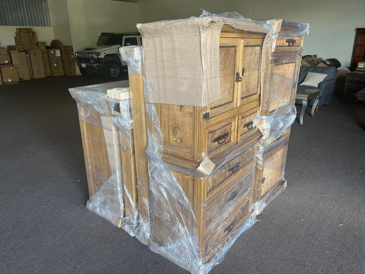 The piece is wrapped very well in a few different parts so it’s easier to transport. I included the total measurements of the piece. The mirror is also wrapped separately so it’s not so high. I have help loading. Hope you can help.
