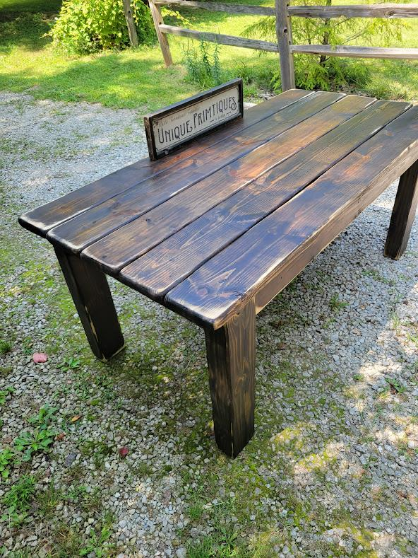 Thank you for viewing this listing, please feel free to make an offer! I run a full-time rustic farmhouse furniture company called Unique Primtiques. Please check out my other USHIP listings and see if that helps you any with combined shipping! I post up items on or near the date of sale so most listings will have an earliest pickup date, meaning I most likely will not have the item completed and ready for pickup much earlier than the earliest date given. This listing is for a small 42x42x31"h farmhouse table and two kitchen chairs....table weight estimated at 150-lb, chairs 25-lb each.