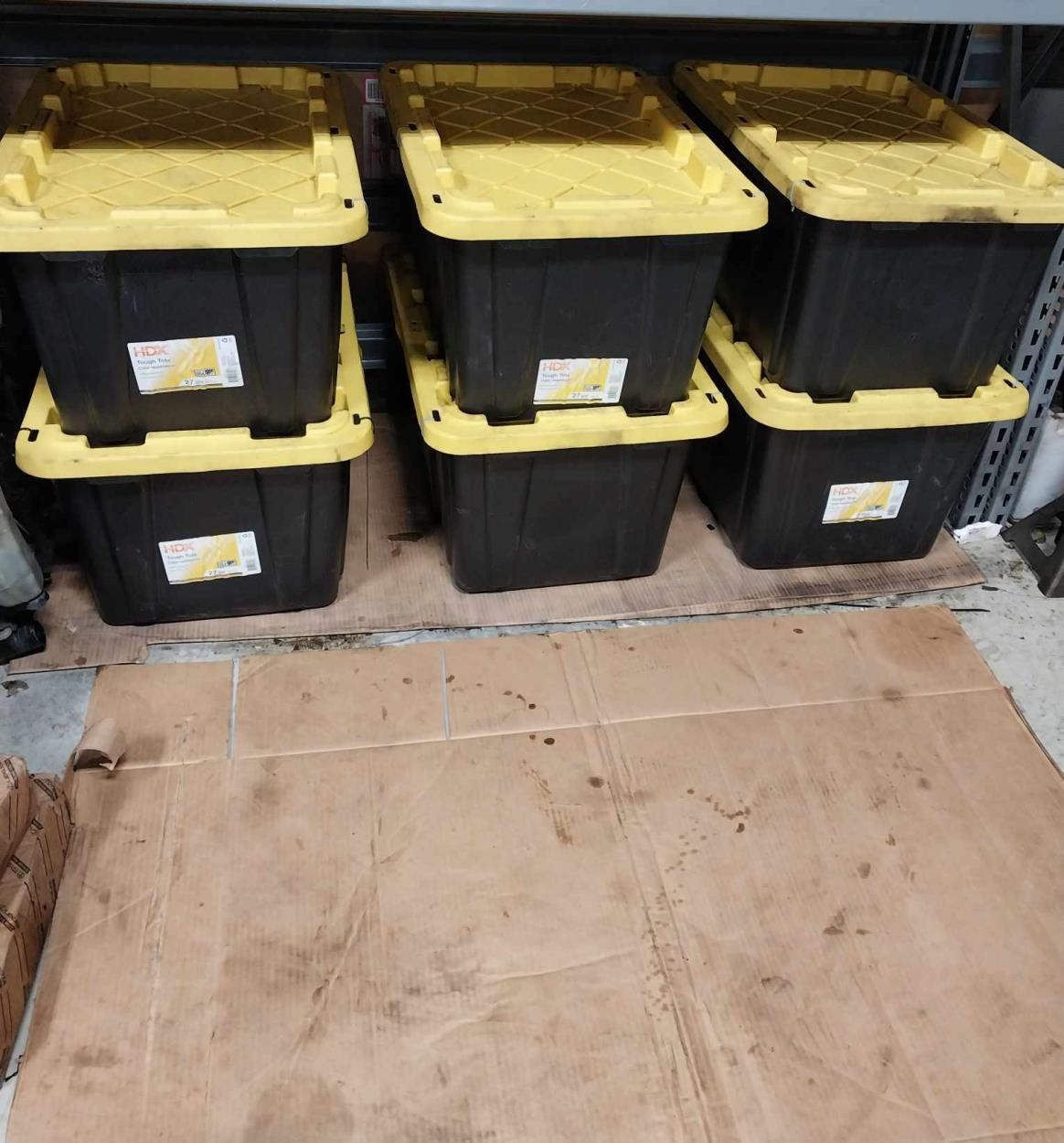 6 PLASTIC CONTAINEERS.AROUND 50 PNDS EACH.