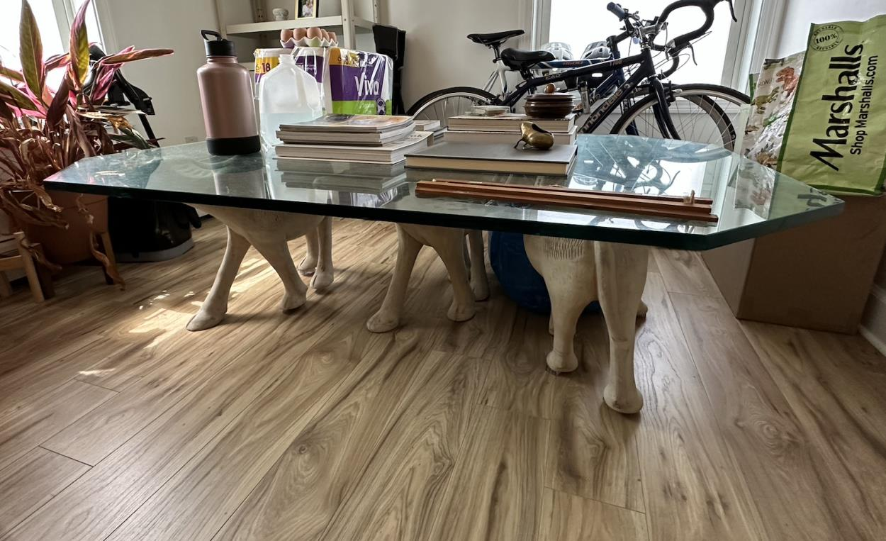 I only need the glass top delivered. I can transport the buffalos that hold up the glass top.