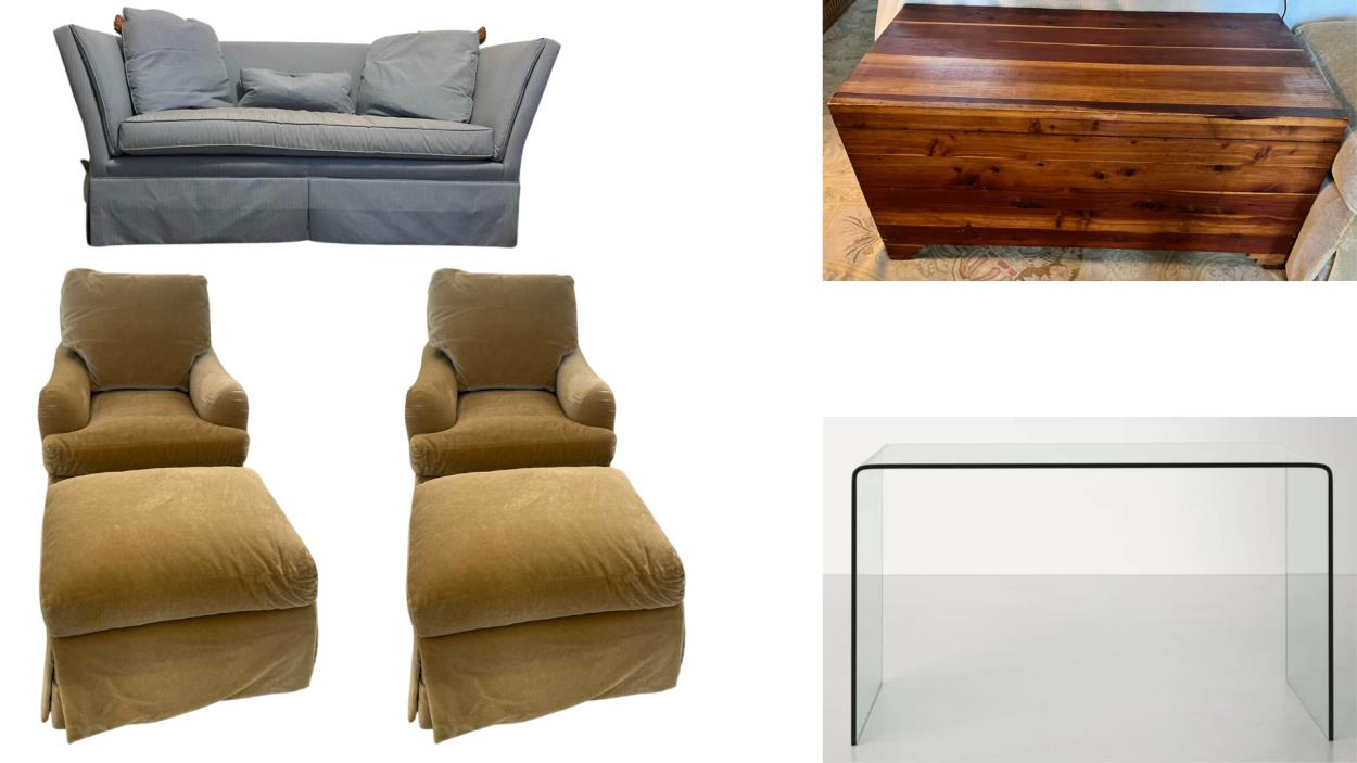 The bed, media table and nightstand could be left on the front lawn. The desk could go in the back shed if possible.