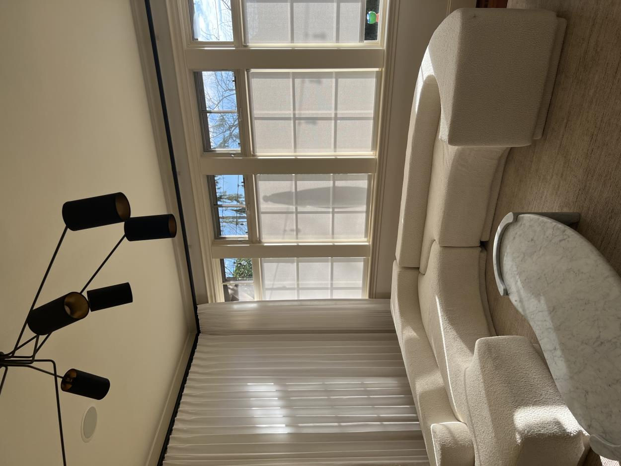 Helix queen sofa wrapped with plastic mattress protector, 80" L x 60" W x 13" D, 120 lbs, there is a half-flight of front porch stairs to enter the house.