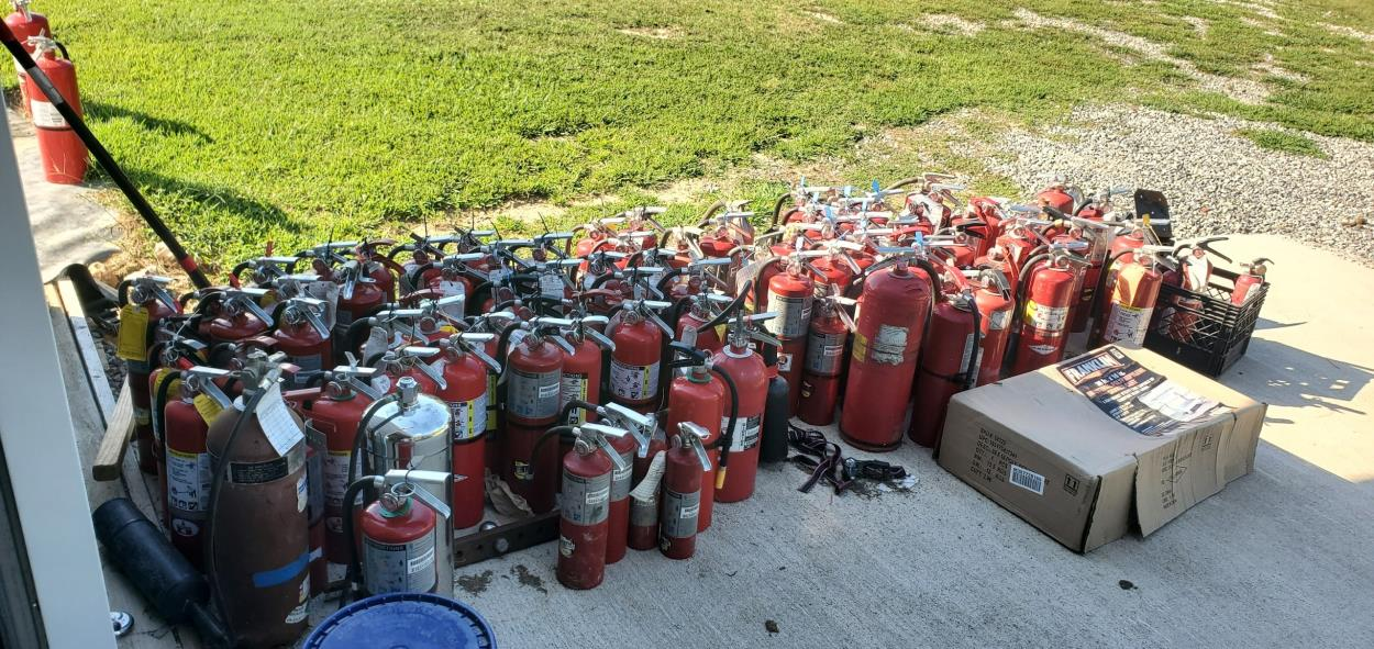 These are fire extinguishers that are currently in a garage they can be stacked on their side or stood up, i need them brought to florida send bids!!