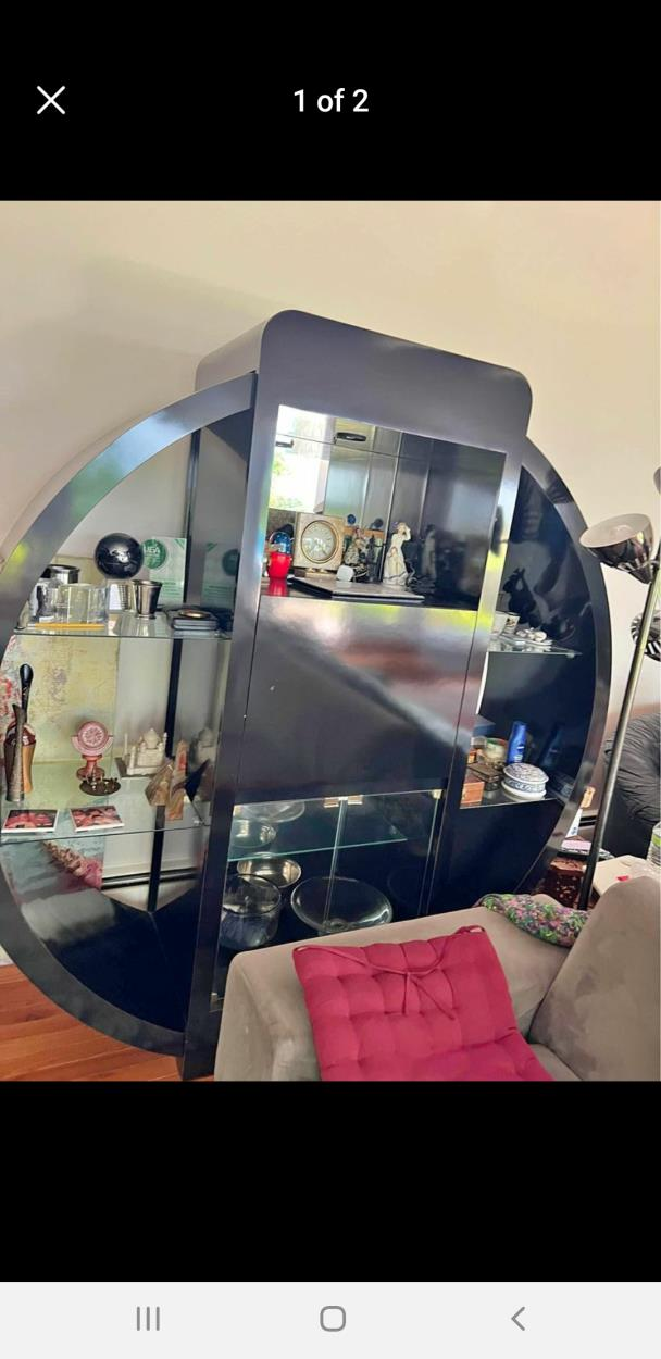 Hi thanks for stopping by. I have a vintage black etagere shelf located on a 1st floor residence. This is 2 man job. Item is in excellent condition and needs to stay that way. I suggest cardboard for the base and full plastic wrap. It will be delivered to my 1st floor stoarge unit. 2 men must carry, will not fir through a doorway any other way. Ideally a box truck, need to stay standing. Glass shelves should be removed and stored away for delivery.